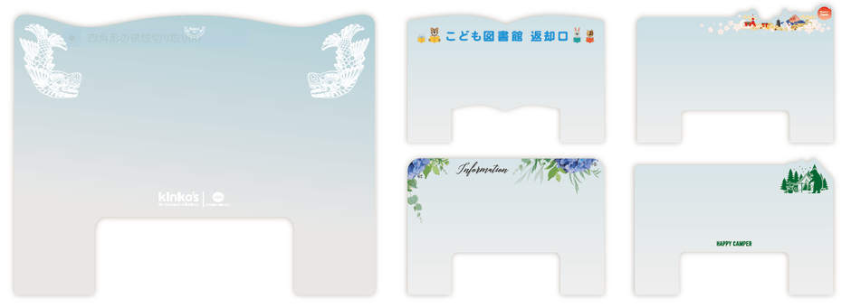 当社は得意とするアクリル素材へのプリントとフリーカット技術に加え、顧客の要望に合わせたオリジナルのグラフィックデザインを一つから提供できる強みを組み合わせ、飛沫対策パーテーションのラインアップに「デザイナーズパーテーション」を開発し追加しました。
