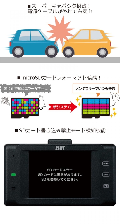 スーパーキャパシタ搭載 microSD™カードフォーマット低減機能 SDカード書き込み禁止モード検知機能