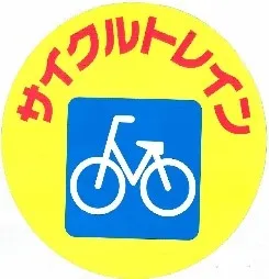 サイクルトレインの車両の前・後部に円形のヘッドマークが表示されています。