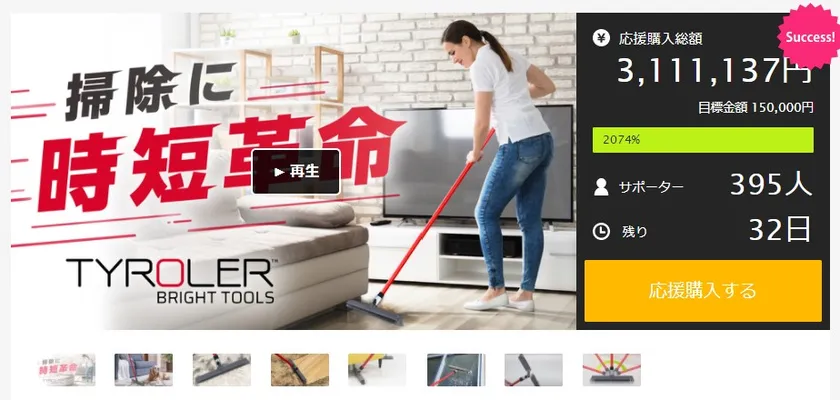 掃除に時短革命!?屋内外のあらゆるゴミを一網打尽するほうき Tyroler(ティロラー)がMakuakeにて目標額「2000%」 3,000,000円を調達!完売御礼につき追加販売が決定!