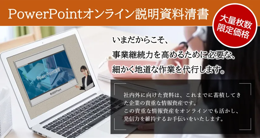 「PowerPointオンライン説明資料清書」500スライド以上の 大量枚数限定の新価格提供を1月12日(火)より開始