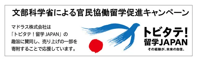 社会貢献活動の一環として、文部科学省による官民協働留学促進キャンペーン「トビタテ!留学JAPAN」に、売り上げの一部を寄付いたします。