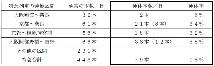 ※大阪阿部野橋発 吉野行き特急3本については、橿原神宮前行きとして運転します。