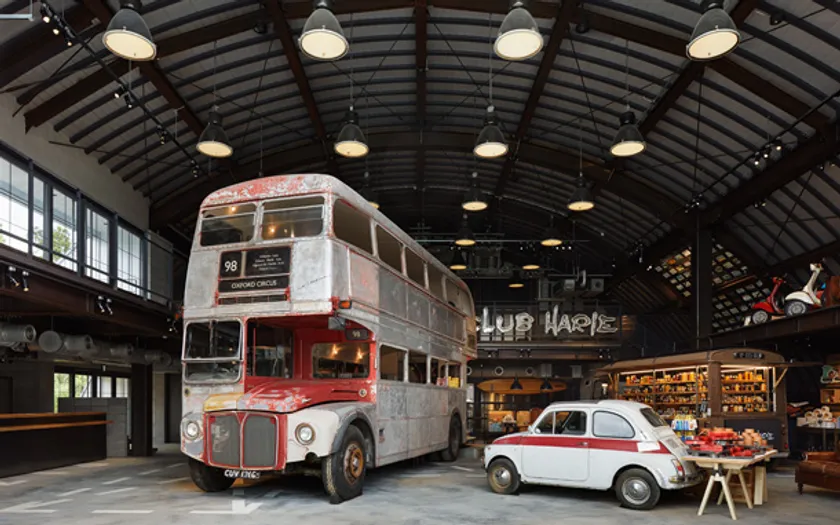 ラ コリーナ近江八幡初開催となるバレンタインイベント『CLUB HARIE Valentine Collection 2021 in La Collina』。会場となるギフトショップはロンドンバスがシンボル。普段はリーフパイやコンフィチュールなど様々なお菓子やラ コリーナ限定グッズを販売しています。