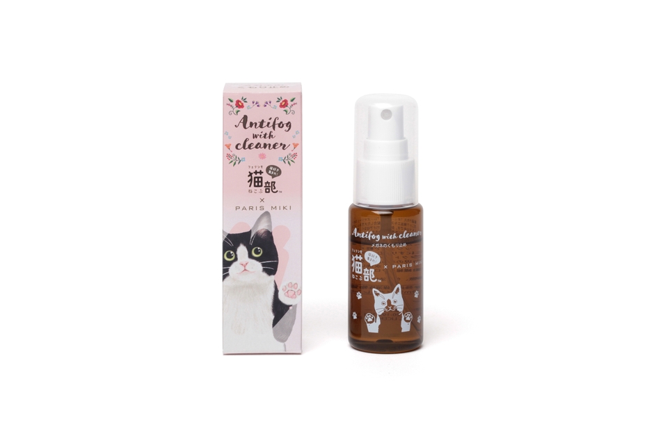 コロナ対策でマスクの着用機会が増え、「マスクをするとメガネがくもって困る」というお悩みは花粉症以外の人でも抱えるようになりました。レンズのくもり止めグッズを製作するなかで、窓の結露で遊ぶ猫をヒントにメガネレンズのくもりをフキフキしてくれる猫をイメージしながら、今回はくもり止めスプレーとくもり止めクロスを開発しました。