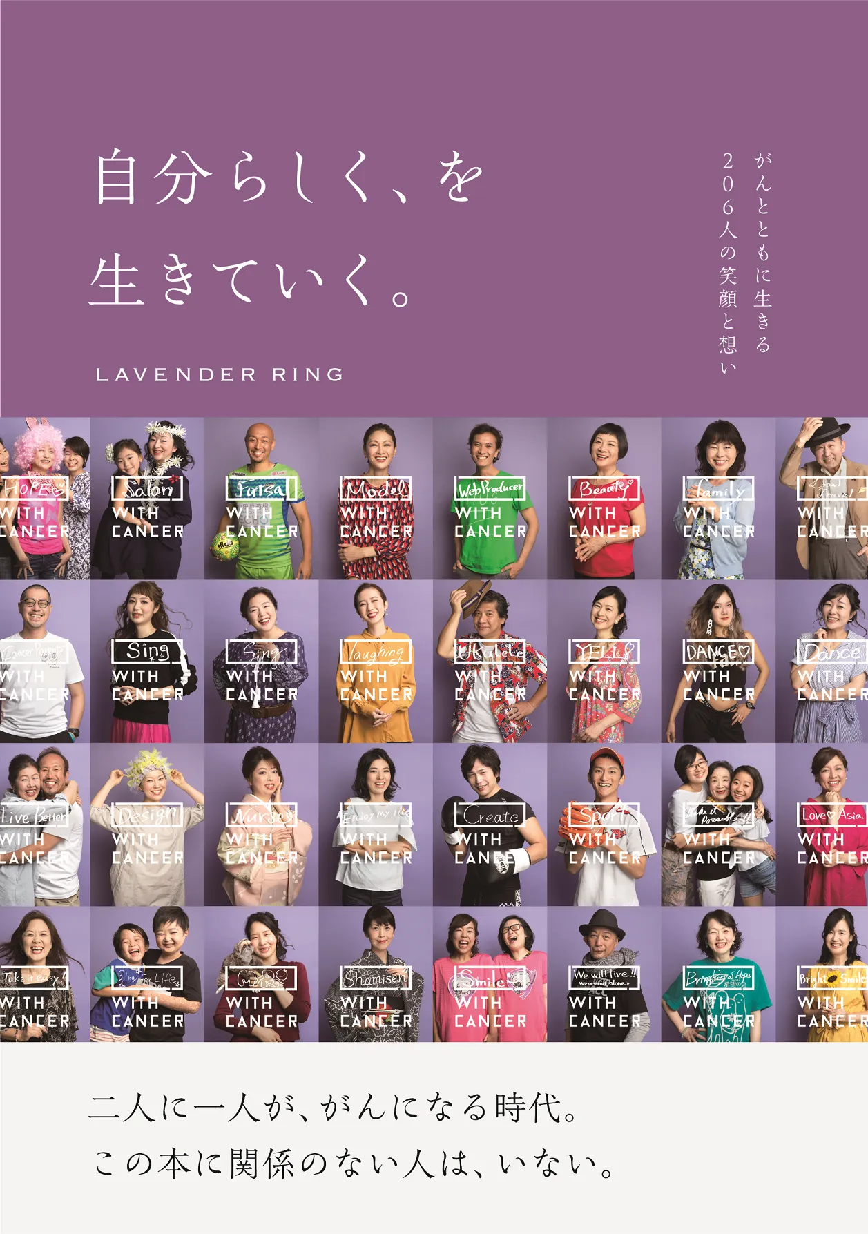 LAVENDER RINGの発足と同時にスタートした「MAKEUP & PHOTOS WITH SMILES」は、毎回募集定員を大きく上回る応募が集まる人気イベントです。2020年までの3年半の間に参加された総勢206名のがんサバイバーは、小さなお子様から、子育てにも奮闘するママ、プロのフットサルプレイヤーやモデル、看護師・医師まで、実に多様です。病気になってから「生きること」と向き合った結果紡ぎ出された、それぞれの哲学。がんサバイバーや、その家族ご友人などの支援者、そして人生に悩む人すべての人をも勇気づける一冊となっています。二人にひとりががんになる日本で、この本が関係ない人は、存在しません。「自分らしく、を生きていく。がんとともに生きる206人の笑顔と想い」は、世界対がんデーである2月4日に発売です。