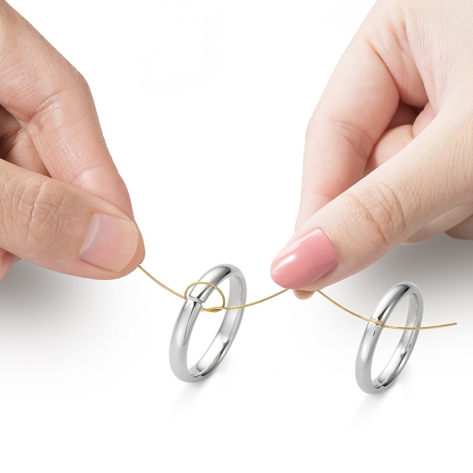 ↓純金、または純プラチナの金属線をふたりで結び合う ※写真はストレートライン(販売中)
