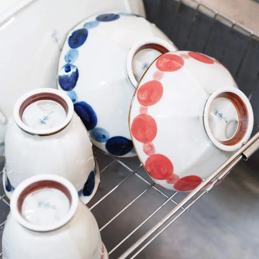 1) 洗い物の悩みを解決!高台の穴から水が切れるお茶碗・コップ・長角皿