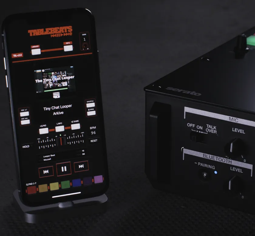 Bluetooth機能を搭載しているので、ワイヤレスでオーディオ入力することが可能になりました。これにより、スマートフォンで再生されている楽曲に合わせてスクラッチ練習を行ったり、オーディエンスからの急なリクエスト曲も音楽アプリから探したりすることができます。PC/Macが誤作動を起こした場合でも、お使いのスマートフォンをバックアップとしてBluetooth接続しておけば安心です。
