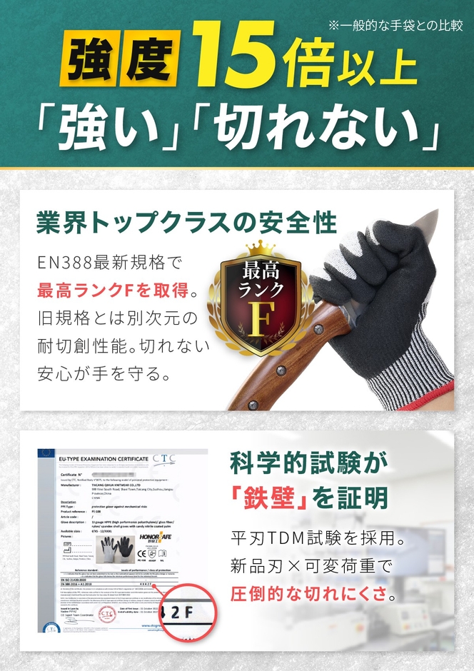 耐切創レベル:EN388:2016 最高ランクF