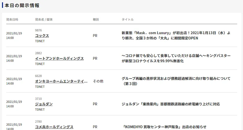 2.企業開示情報:TDnet、EDINETで開示された重要情報を提供
