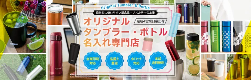 販促グッズやノベルティとしても人気の 名入れタンブラーやボトルが作成できる専門店 「名入れタンブラー館」を1月19日にオープン