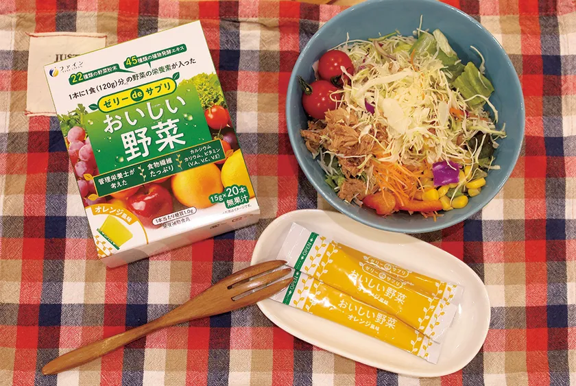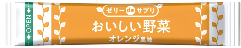 本品は、個包装されたスティックタイプのゼリーです。1本当たり野菜120g(1食)分の栄養素※を配合しているため、1本食べれば、1日の不足分を補えます。また、3本食べれば1日分の野菜の栄養素を摂取できます。さわやかなオレンジ風味に仕上げており、ツルっとおいしくお召し上がりいただけます。日頃の野菜不足の補助としてお召し上がりください。