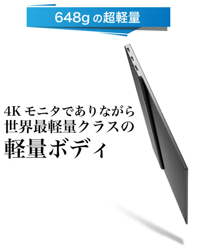 15.6インチの大画面に関わらず、重量648g、世界最薄レベルの薄さのスリムなデザインになっており、付属のモニタースタンドにもなるマグネット着脱式液晶保護カバーを入れても1,036gなので、現実的に持ち運びが可能な軽さです。
