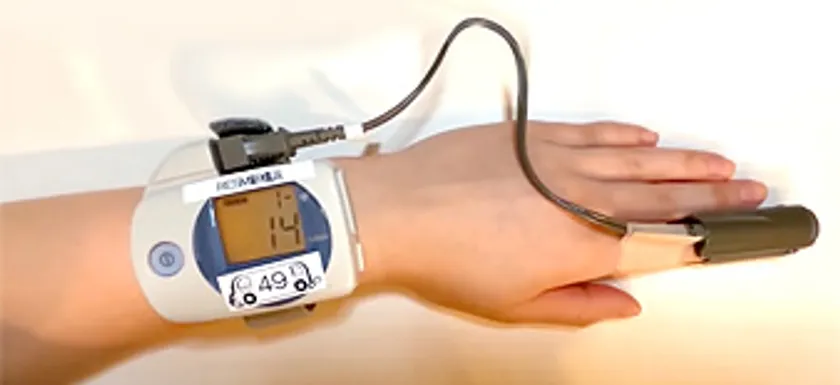 検査機器(パルスオキシメーター)を使い、「酸素飽和度」と「脈拍数」を測定し、主に睡眠時無呼吸症候群の疑いがあるかどうかを検査。