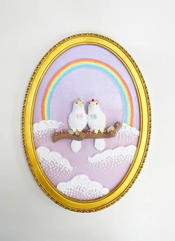 樹脂を用いて様々なものにお菓子のデコレーションをする現代美術作家、渡辺おさむ氏によるスイーツデコアートの展覧会を開催。今回は旧約聖書に登場する有名な物語「ノアの方舟」をテーマに、物語に登場する動物、鳩、虹をモチーフに作品を制作。会場はさながらノアの方舟のような空間に。ノアの方舟の物語の中で、世界を覆い尽くす大洪水のように、非情なウイルスが世界に蔓延する現代における“助け舟”のイメージを、フェイクのスイーツやクリームに託し、新作を含む約40点を展示する。