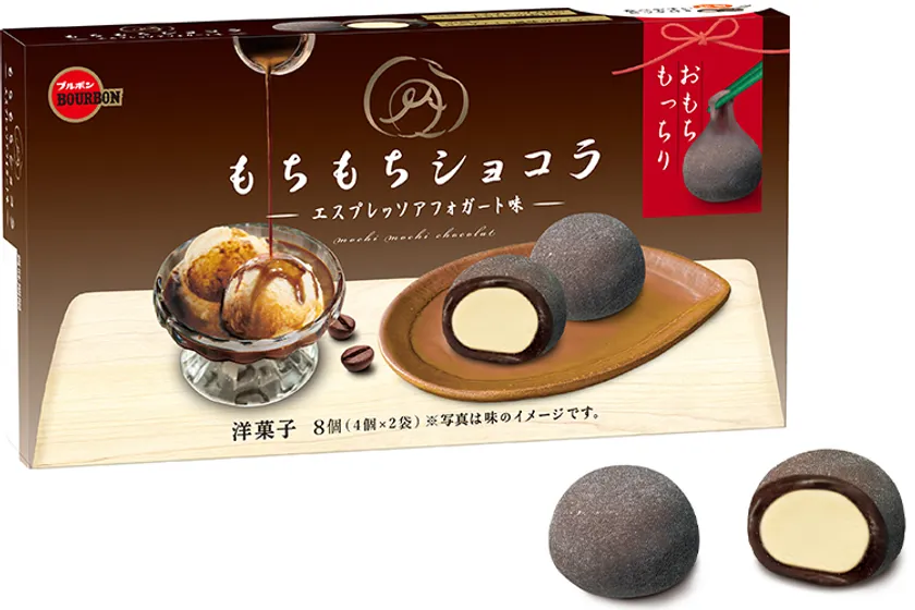ブルボン、ほろ苦いおもちとバニラアイス風ガナッシュの一体感 「もちもちショコラエスプレッソアフォガート味」を 2月2日(火)に新発売!