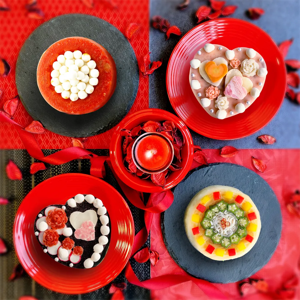 監修は、ヒルトンやシェラトンなどの有名ホテルなどで経験を積んだ本格フレンチシェフ・井川智章氏が担当。パティシエが作るケーキのように、野菜を中心とした色鮮やかな具材を1つ1つ丁寧にデコレーションし、見た目も楽しいデザインに仕上げています。遊び心のあるおしゃれなネーミングもポイントです。