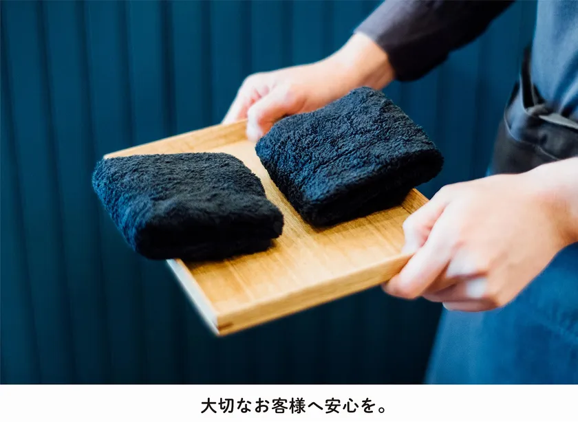 お店で使われる“おしぼり”にHUGを導入頂きます。