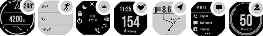 ABCセンサー/スポーツアプリ/コントロール画面/光学式心拍計/ナビゲーション機能/通知機能/ストレスレベル