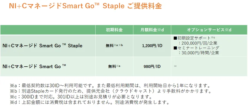 NI+CマネージドSmartGo(TM) Staple ご提供料金