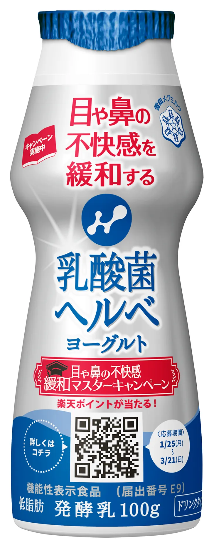雪印メグミルク株式会社(本社:東京都新宿区、代表取締役社長:西尾 啓治)は、『乳酸菌ヘルベヨーグルト ドリンクタイプ』で、目や鼻の不快感緩和マスターキャンペーンを2021年1月25日(月)から3月21日(日)まで実施します。