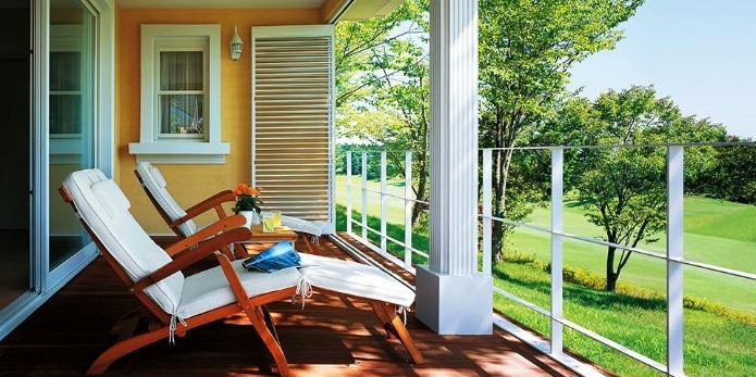 眼前にフェアウェイが広がり、ゴルフ場に暮らしているかのような非日常空間のフェアウェイフロントヴィラ。ゴルフコースのフェアウェイに沿って建ち並び、欧米の街並みを思わせるような風景を醸し出す独立した各ヴィラにはプライベート天然温泉が備えられ24時間お楽しみいただけます。お部屋のキッチンには自炊設備も整っており、中長期滞在のご利用でも快適。スイート仕様の広々としたリビングやコースと一体化したデッキテラスからの雄大な眺望で至福の別荘ライフがご堪能いただけます。