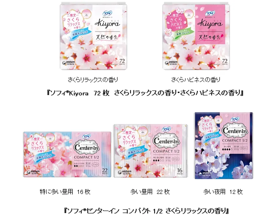 ユニ・チャーム株式会社(本社:東京都港区、代表取締役 社長執行役員:高原豪久)は、まるで香水のようにいい香りのパンティライナーとしてお客様に高い支持をいただいている『ソフィ(R)Kiyora』シリーズと、持ち運びに便利な生理用ナプキン『ソフィ(R)センターインコンパクト1/2』シリーズから、一足先に春を感じる「さくらの香り」を2021年2月2日より全国で限定発売します。