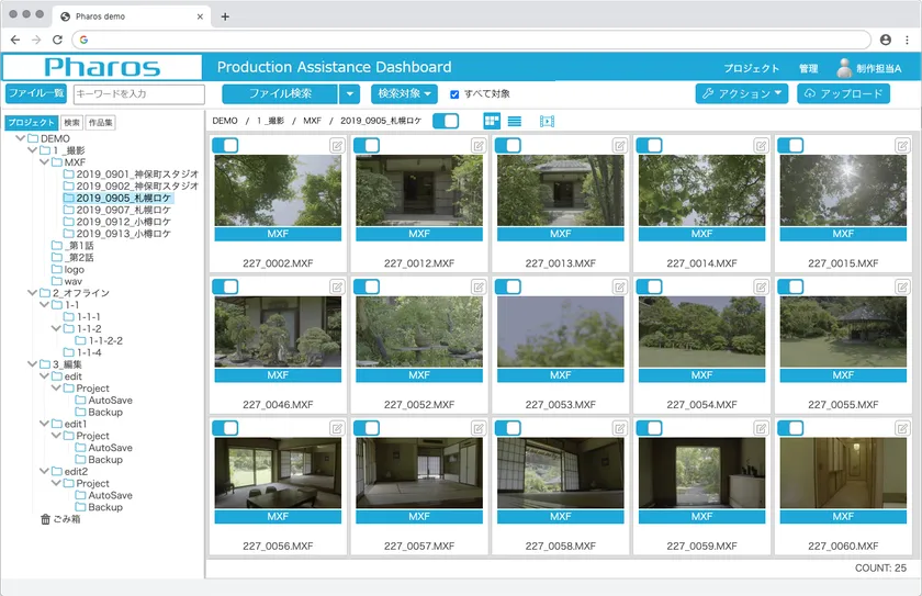 「Pharos」は、クラウド基盤を活用した映像制作や各種ワークフローと連携したファイル管理が行える制作フロー支援サービスです。