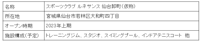 株式会社ルネサンス(代表取締役社長執行役員:岡本 利治、本社:東京都墨田区、以下「当社」)は、「スポーツクラブ ルネサンス 仙台卸町(仮称)」を2023年上期に出店することといたしましたので、お知らせいたします。