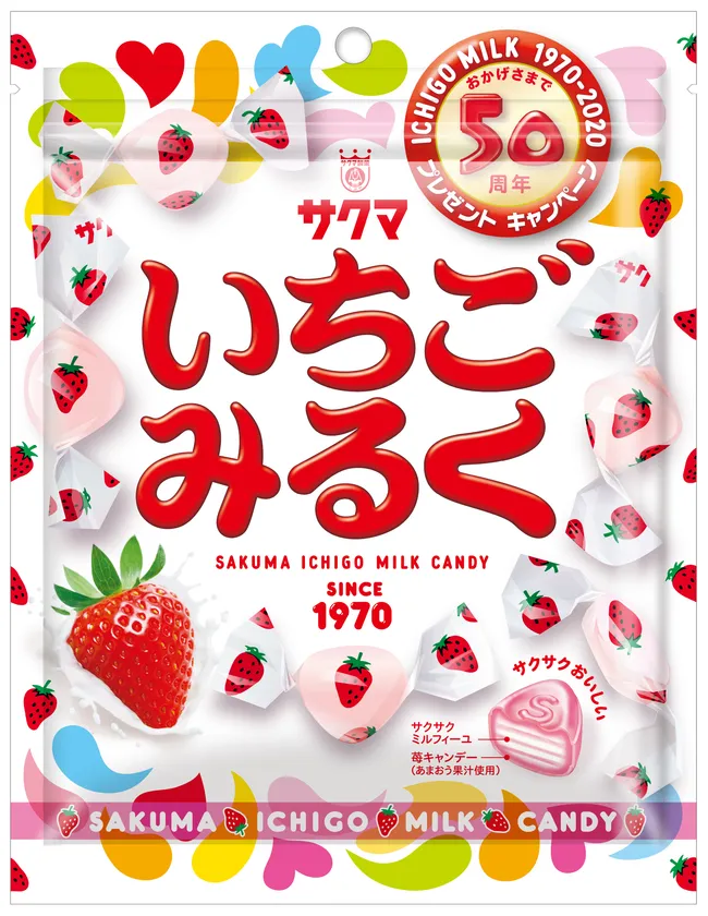 サクマ製菓「いちごみるく」キャンディは2020年に「発売50周年」を迎えた、国内初のクランチキャンディです。
