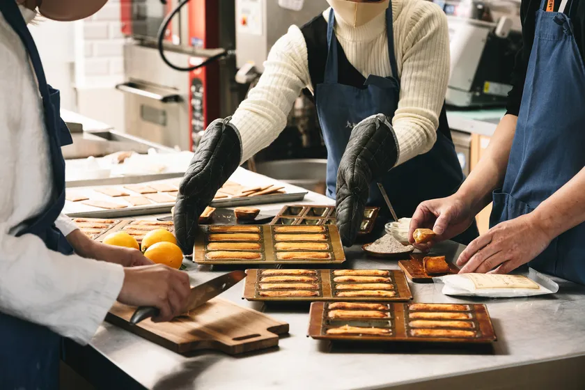 焼成時間、温度、原材料の配合率など、私たちが求めるチーズタルトに最適なレシピを求めて試作を繰り返し、2年の月日をかけて、コクのある伊佐牧場のナチュラルチーズと融合する風味豊かなタルト生地が完成しました。さっくりとした香ばしい焼き上がりと共に、九州チーズタルト特有の、小麦と雑穀の香りが楽しめます。