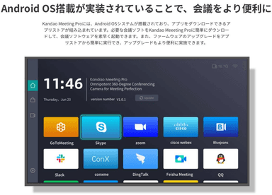 Kandao Meeting Proは、ほとんどのWeb会議アプリに対応しています。例えば、Skype、Cisco、WebEx、Zoom、Slack、GoToMeetingなどのスタンダードな優れたWeb会議システムです。