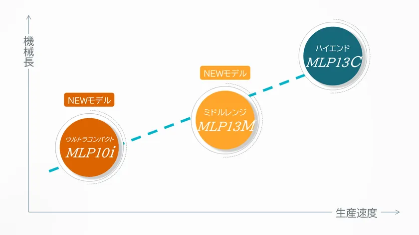 そして、そのウルトラコンパクト機MLP10iとハイエンド機MLP13Cの間に属するニーズにもお応えすべく、ミドルレンジ機としてMLP13Cの高い性能を受け継ぎつつ、全長と価格を抑えたMLP13Mの開発に至りました。