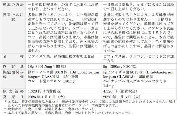 大正製薬株式会社[本社:東京都豊島区 社長:上原 茂](以下、当社)は、便秘気味な方のお腹の調子におすすめの成分に加えて、プラスαの悩みにも応える成分を配合した新しいサプリメントシリーズとして、肥満気味な方※1のおなかまわりも気になる方におすすめの成分を配合した「ビオフェルミン スマート腸活サプリ」、肌が乾燥しがちで潤いも気になる方におすすめの成分を配合した「ビオフェルミン セラミド腸活サプリ」の2製品を、2026年1月6日(火)より通販限定で販売いたします。
