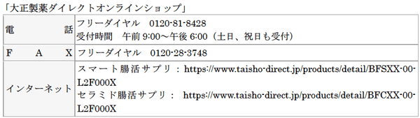 大正製薬ダイレクト お客様センター TEL:0120-81-8428