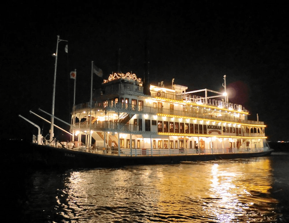 赤いパドルが目印の「外輪船ミシガン」は、びわ湖を代表する大型観光船です。1982年の就航以来、これまでに延べ800万人以上の方にご乗船いただいております(年間乗船客数/約15万人)。最上階デッキからは、びわ湖南部の美しい景色や比叡山・坂本の街並みをご覧いただけます。また、レストランシップとして軽食から本格的なお料理まで楽しめるだけでなく、音楽ライブや観光案内も楽しむことができるエンターテイメントクルーズ船です。