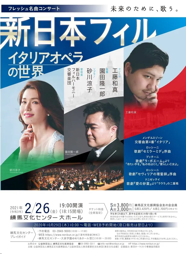 フレッシュ名曲コンサート イタリアオペラの世界 練馬文化センターにて2021年2月26日(金)に開催!