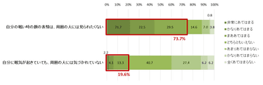 (3) 眠気を感じているときの顔の表情を「周囲に見られたくない」人は7割超であった(回答が「非常にあてはまる」、「かなりあてはまる」、「まああてはまる」の合計)。