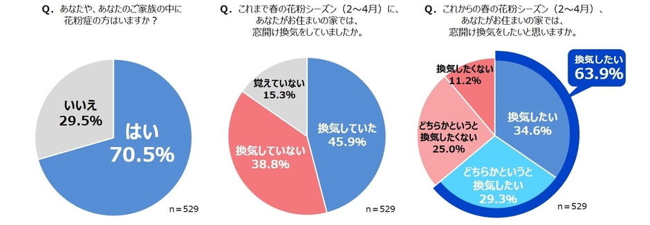 コロナ禍で換気に対する関心が高まり、花粉シーズンでも換気したい人は63.9%。