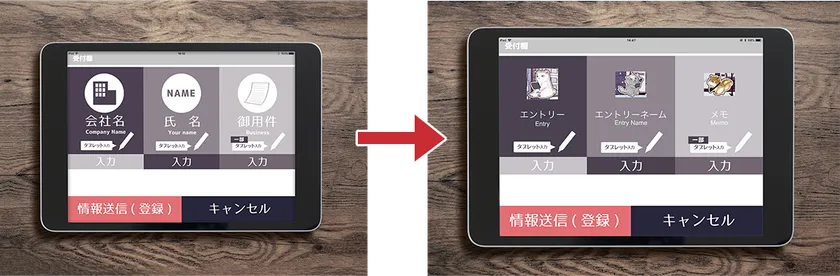 * 会社の受付以外に利用できるよう、受付署名欄の画像とテキストの表示を変更することが可能です。