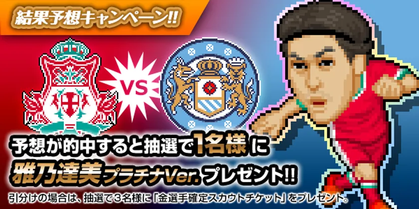 勝利したチームの該当ツイートをリツイートした方から抽選でリバプールスカウトのプラチナ選手「雅乃 達美」を1名様にプレゼント。