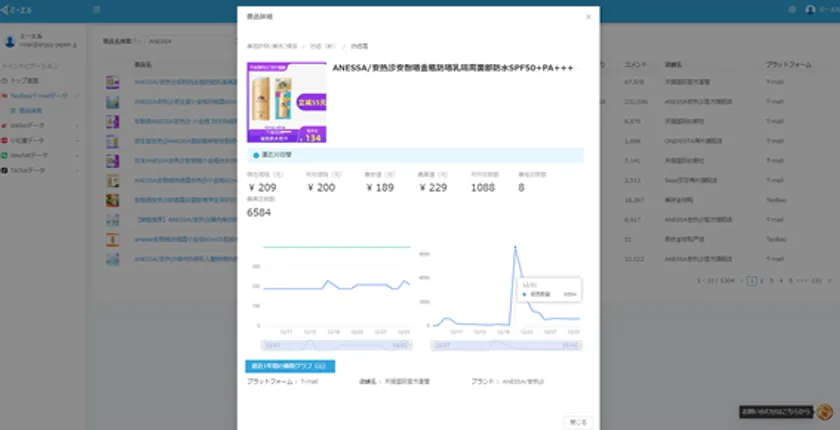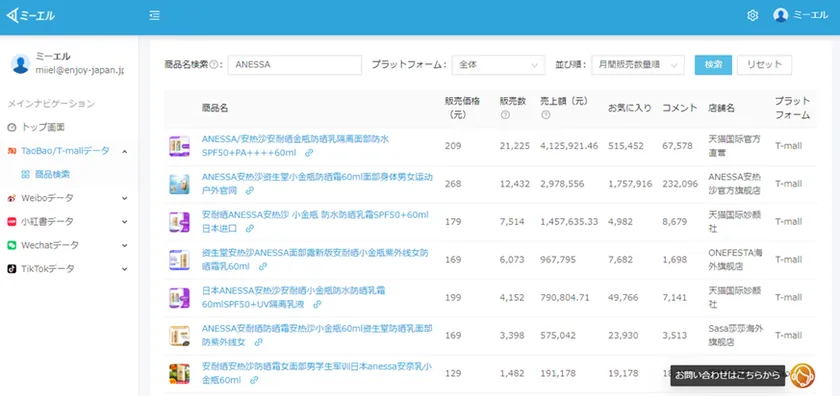 ●主な機能1. 天猫(TMALL)・Taobaoの販売データがミエル!
