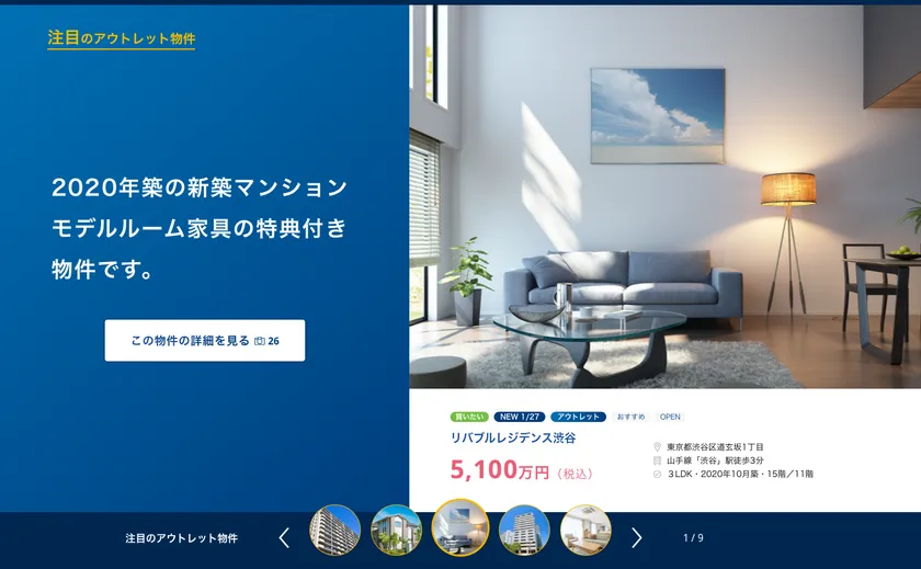 東急リバブル株式会社(本社:東京都渋谷区、代表取締役社長:太田 陽一)は、自社ホームページ上に特典サービス付で購入いただける新築未入居物件を取り揃えた特設サイト『リバブル アウトレット不動産モール』を1月28日(木)に開設しましたので、お知らせいたします。