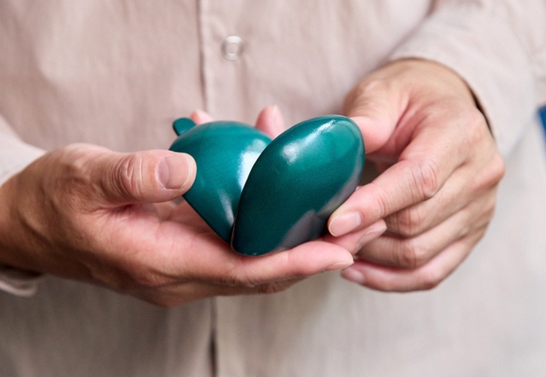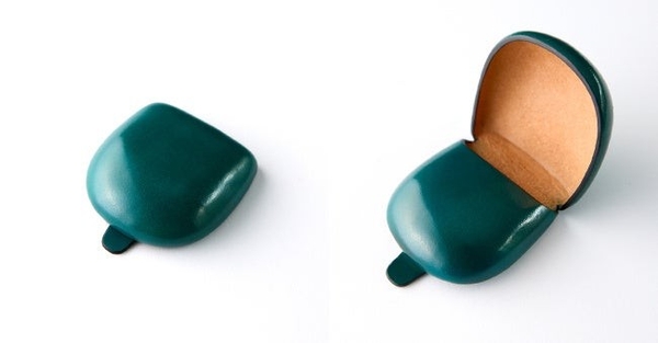 シームレス技法が美しいカーブを生む特徴的なデザインのコインケース。アンティークグリーンカラーは手元が華やかに。