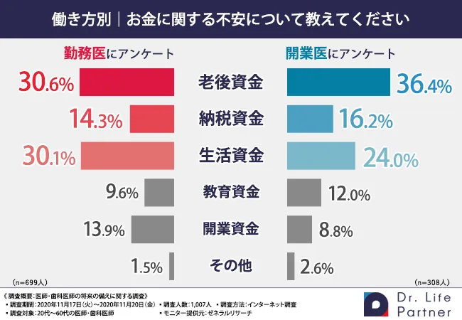 先ほどの調査で、勤務医でも開業医でも老後資金や納税資金、生活資金で悩んでいる医師・歯科医師が多いことがわかりました。