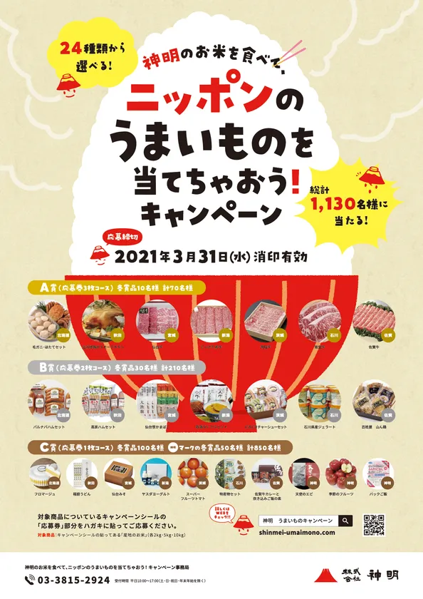 「神明のお米を食べて、ニッポンのうまいものを当てちゃおう! キャンペーン」を3月31日まで期間限定で開催! ~各地のうまいもの24種類 総計1,130名様にプレゼント~