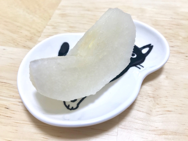まずは、食後のデザートの梨を食卓に一緒に置いてみましたよ!