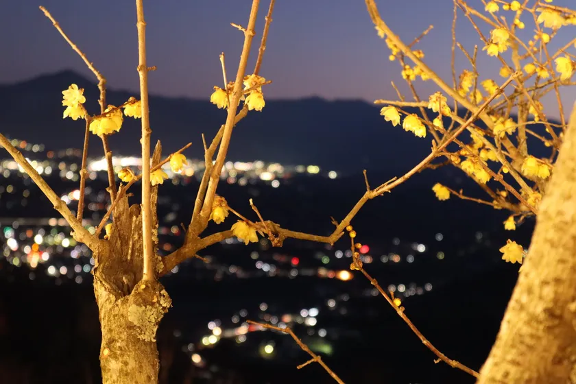 開放感のある広い園内で、ライトアップされたロウバイはもちろん、秩父地域の夜景も一緒に楽しむことができます。