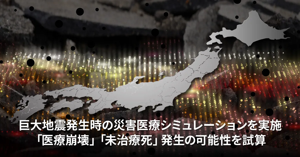 遠くない未来に首都直下地震や南海トラフ地震が発生するかもしれないと言われている中、被災した大量の患者が病院に殺到し、医師や病床などの医療資源が不足する「医療崩壊」が発生した場合、病院まで辿り着いても必要な医療処置がなされずに亡くなってしまう患者が大量発生することが懸念されています。
